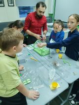 На кружке дополнительно образования "ЭкспериментУМ", вместе с Алексеем Викторовичем в Точке Роста, обучающиеся начального звена проводили эксперименты с цементом. Изучали состав кирпича и цемента. Их свойства при взаимодействии с водой. Две команды мальчиков и девочек соревновались между собой в строительном мастерстве.