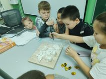 Ребята познакомились с удивительным миром насекомых и поделились своими знаниями, а так же узнали о науке «Энтомология», которая изучает маленьких обитателей планеты. Андриенко А.В. рассказал ребятам, что насекомые получили своё название потому, что их тело словно разделено на части полосочками - насечками. Они обратили внимание детей на то, что внешний вид у насекомых разный, и это помогает им хорошо маскироваться в природе. С большим удовольствием школьники поучаствовали в играх «Найди свой домик», «Кто ползает, а кто летает?», отгадывали загадки и познакомились с книгами о насекомых. В завершение эко-урока ребята приняли участие в раскопке насекомых.