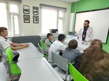 Руководитель Центра Андриенко Алексей Викторович провел интересную и познавательную экскурсию для всех присутствующих по профильному кабинету Центра, рассказал о задачах и функциях Центра, об особенностях организации образовательного процесса и имеющемся оборудовании.