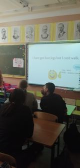 В начале мероприятия 5 и 6 класс разбились на команды. Команда «Бабочки» и «Божьи коровки». Каждая команда придумала себе название на английском языке, эмблему, девиз. Команды по очереди отгадывали загадки. Учащиеся должны сопоставить английские пословицы с их русским переводом. Конкурс «Собери картинку», каждой команде даётся конверт, в котором находятся 12 частей от картинки. Нужно быстро собрать картинку и дать её описание. Конкурс «Знаете ли вы животных?». Представители от каждой команды по очереди произносят названия животных. Побеждает тот, кто последним назовёт животное. Расшифровать названия животных. Отгадывали загадки о животных. Заполняли пропуски в алфавите. В конце мероприятия по итогам конкурсов, команда «Божья коровка» заняла I место. Обе команды активно участвовали.