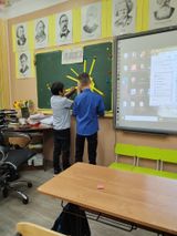 На экране представлена презентация «Качества человека». Вместе с учащимися разделили качества человека на положительные и отрицательные, разобрали значение каждого слова. Дети активно приняли участие в обсуждении.