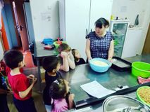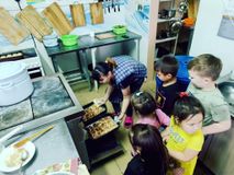 И ещё наши ребята посетили кухню и посмотрели на труд поваров детского сада. Они наблюдали за процессом приготовления булочек, с интересом рассматривали кухонное оборудование и конечно же поблагодарили поваров за вкусную и питательную пищу, которую они готовят детям.