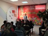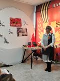 Заведующей филиала Нидымской библиотеки, Токаревой И. К. было прочитано стихотворение о войне, рассказано о подвигах связиста Иннокентия Петровича Увачана, дале прочитали произведение о подвиге связистов в годы ВОВ. Учитель начальных классов, Пакачакова Ю. В. читала детям произведение. Дале стих "Ни шагу назад" продекламировала, учитель музыки, Голод Ж. В.