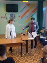 Затем учитель физики и химии А. В. Андриенко представил презентацию о жизни и творчестве Дм. И. Менделеева, вместе с учащейся школы Красноштановой Маргаритой показал опыты, которые вызвали восторг и интерес, особенно у учащихся начальных классов. Учащиеся школы представили сценки из школьной жизни, которые вызвали улыбку и смех, ученики 3 класса рассказала стихи, посвященные дню науки, а учащийся 8 класса Янушкевич Иван спел песни в стиле рэп о физкультуре, о здоровом образе жизни.