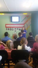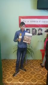 Мероприятие заканчивается чтением И.К.Токаревой отрывков из стихов,И.Медведева, «Лишь миг один» и Л.Молчанова «Я снова куда-то спешу», а учащийся 8 класса школы,Янушкевич Иван исполнил песню «Голубые береты». Весь зал аплодировал.